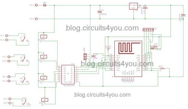 Se realiza IOT basado en proyecto de automatización del hogar con bajo costo ESP8266 ESPino ESP-12 módulo de WiFi, utiliza relés y algunos componentes simples, se suministra completa código y pcb layout, para más detalles sobre la configuración del software a través de Internet INTRODUCCIÓN tutorial en menú superior. Puede controlar cuatro de los dispositivos eléctricos y también puede monitorear temperatura. ESP-12 es bajo costo módulo que estamos utilizando aquí,