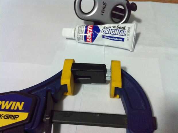 Las instrucciones de pegamento Loctite dicen a poner pegamento en ambas partes, espere cinco minutos y luego les pegan. Una vez que están juntos, la abrazadera y espere 2 hrs (24 para diluir).
