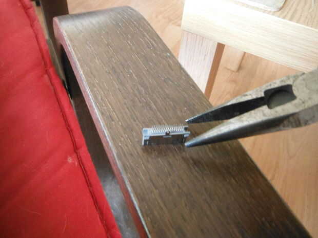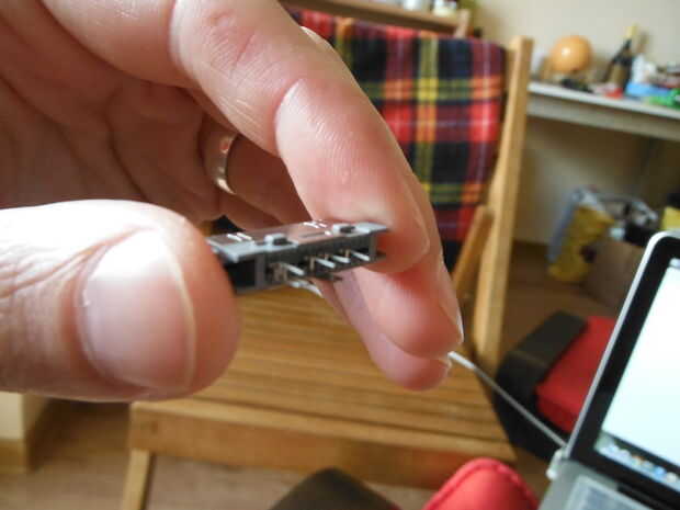A continuación, ligeramente curva pins 2, 3 y 4 alejados uno del otro. Esto sólo le da un poco más espacio después de la soldadura. Corto los pines 11 y 15 juntos doblándolas hacia adentro hacia los demás. A soldarlos posteriormente.