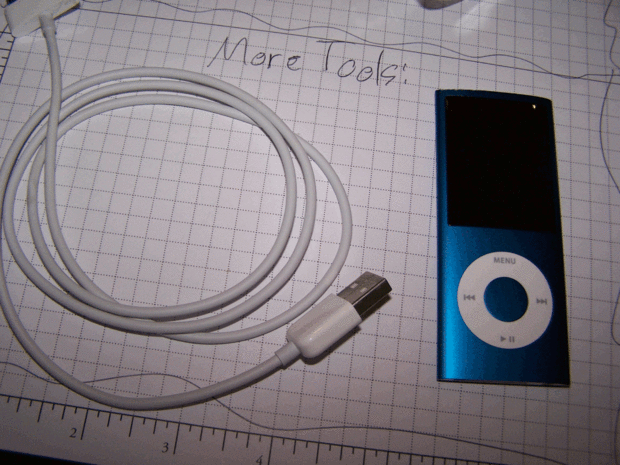 proyecto KTZ: DIY iPod nano DockSincronizar con compuerCarga con el adaptador o pcReproducir música con un amplificador de salidaPaso 1: preparar iPod nanoiPod nano USB a PCLínea del USBAdaptador de 5V (necesidad 3, corte las 2 colas)Caja para soport