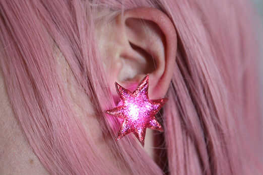 Hay una película que sale, pero desde la mirada de él, no hace mucho honor a la serie de los 80, o su creador Christy Marx. En mi opinión es realmente una oportunidad perdida para una escandalosa, synthed fuera, junto a la futura película con hembras grandes de la moda, música y kick-ass. Sin embargo, ha despertado un interés en Jem otra vez y han recordado mi generación cuán fresco puede ser color rosa. Por lo tanto, como un pequeño homenaje que he creado pendientes estrellas de Jem que parpadean y cuando presionado.