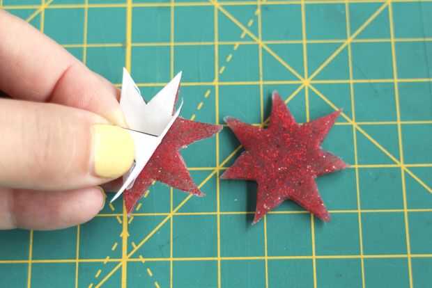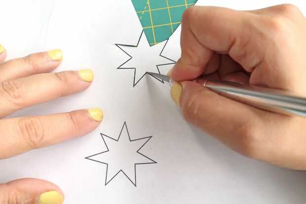 Cuando el pegamento esté seco, quite las estrellas el papel de pergamino. Para acentuar el contorno de las estrellas, cortar las formas de estrellas de la plantilla y una cinta en la parte posterior de cada estrella. Compruebe para ver si se reflejan.