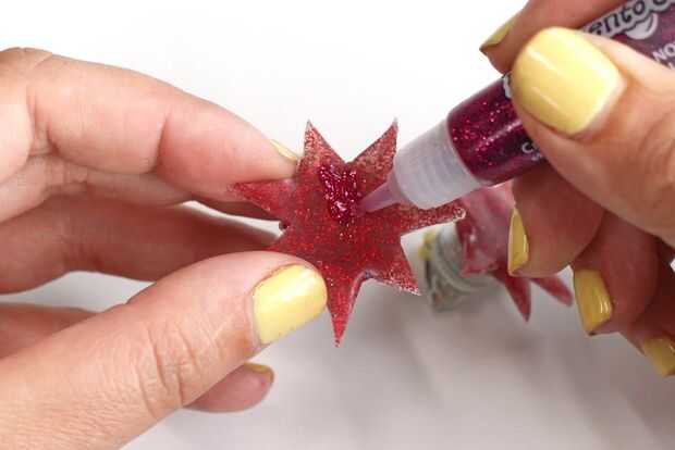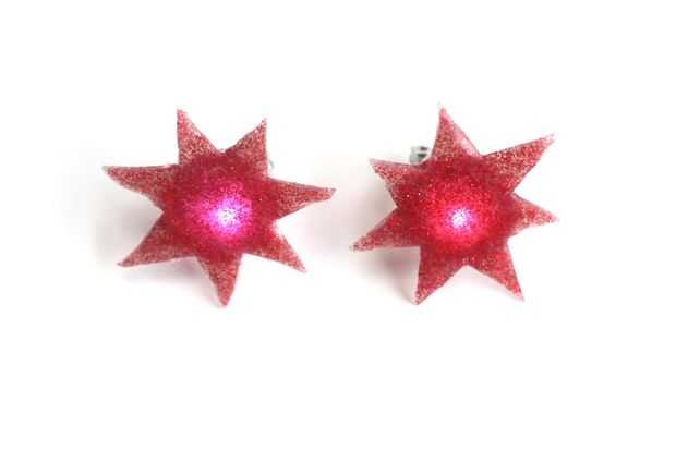 El pegamento caliente del brillo es bonito, pero es un poco aburrido y no absolutamente tan brillante como podía ser. Esto se fija fácilmente con una pluma del pegamento del brillo. Cubrir la cara entera superior para que sea más brillante y más colorido. Que utiliza rosa en el centro y se indica cada pendiente con rojo. Después se secan, haya terminado! Giro en, agarrar un micrófono y cantar hacia fuera!