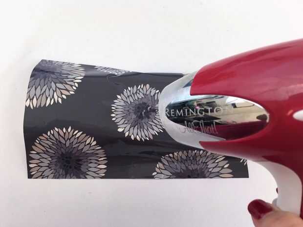 Desprenda el respaldo de sus películas impresas y aplicar sobre el diseño. Utilizando un tramo de secador de pelo diseño de la película y pulse en el pegamento con los dedos o el extremo romo de un lápiz.