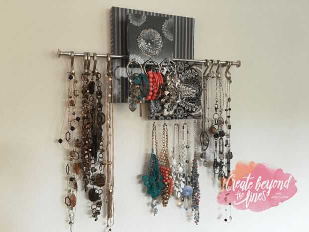 Ganchos de tornillo en la madera para crear perchas adicionales. Pulseras usar ducha circular ganchos para sostener tus pulseras en agrupaciones de color y colgar de los ganchos.