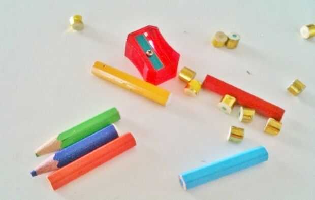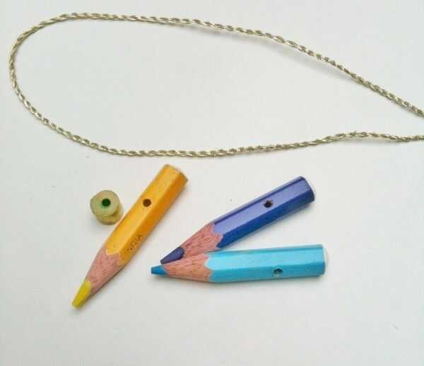 Ahora utilice una broca pequeña y perfore orificios a través de los lápices y los granos de oro lápiz... Consulte imágenes
