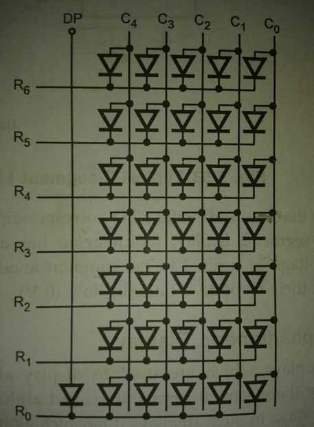 Esta es 5mm LED THD(Throw hole device). El terminal largo indica terminal corto y positivo indica negativo. Los esquemas se muestra arriba es circuito de tablero de 5 x 7 LED de matriz de puntos. mientras que la construcción al abandono del circuito el LED de DP.
