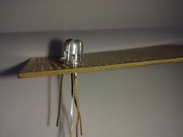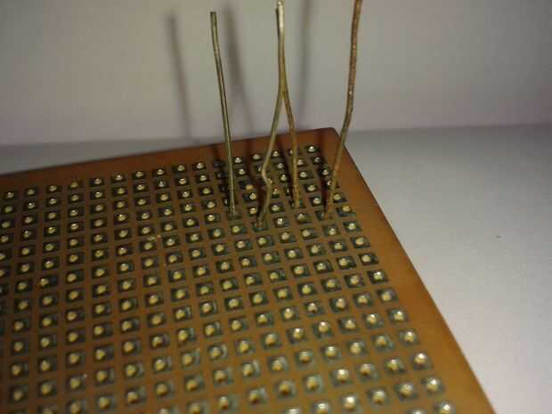 Primer lugar todos los LED en la placa del tablero todos los terminales negativos de la curva horizontal. Luego de la soldadura de todos los terminales en fila sabio, por fin un terminal de cada fila. Por lo tanto totalmente 7 terminales negativos.