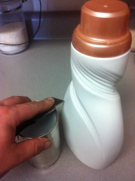 Usando 15oz puede como una plantilla de altura (como se ve en las fotos arriba) Marque una línea de corte alrededor de las 2 botellas de plástico. Mantenga su herramienta de corte y haga girar la botella. Esto asegurará que usted tiene una línea uniforme de corte en.
