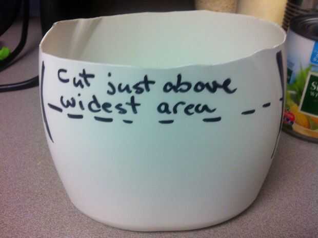 Para el termo conformado un poco más predicable escoge uno de los fondos tiene que ser la parte superior de su depósito. Esto se convertirá en el medio eso lados sobre el fondo.