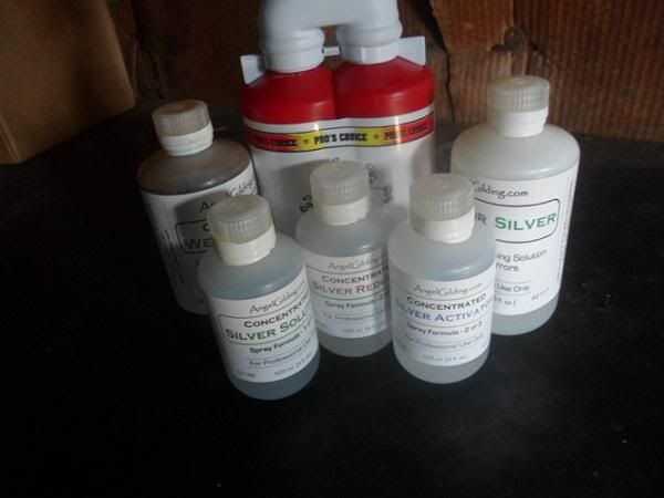 Aerosol plata productos químicos (menos expencive una opción, se concentran y cubrirá cerca de 200 pies de cuadrado que es más que suficiente para aprender, obtener el cuelgue de ella y luego convertirse en un experto sólo para $80