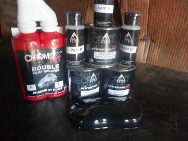 Cuando yo estaba construyendo mi sistema años atrás Ángel dorado no crear su propio sistema de dos partes de "Aerosol en Chrome" por lo que construí la mina utilizando su sistema de tres partes de "Spray de plata", pero funciona muy bien también (puede probar su sistema de dos partes) que quería ver qué bueno es por lo que he comprado también un sistema muy similar que fue vendido por Alsa Corp(it was $299 at the time I purchased it ahora sus $500) http://www.alsacorp.com/products/chromefx/ mis pruebas concluyeron que ambos sistemas te da excelente acabado pero si usted calcula los pies cuadrados por cada dólar que importe este DIY es unas 20 veces más asequibles.