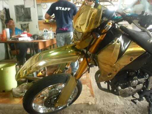 Unicoat kit de Angelgilding viene con una unidad de color violeta, que es necesaria reproducir una apariencia de cromo, recuerde esto es plata y como tal no se ve como el cromo puro, necesita ese tono azulado, y como se puede ver en la foto de dirtbike, también puede utilizar todo tipo de color para reproducir, oro, cobre y otros colores... todo debe pasar más de 200 dólares y ser capaces de cubrir unos 200 pies cuadrados de productos