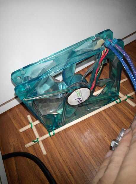 Obtener un 80mm ventilador, palillos y twistee lazos, crear un lazo rectangular andamios que el ventilador para actuar como una base para apoyar el 80mm ventilador vuelque.