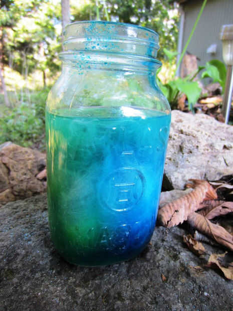 Para multi tie dye mirada añadir la fibra en el frasco primero. Luego agregar los colores a diferentes rincones en tu tarro. (no agitar)