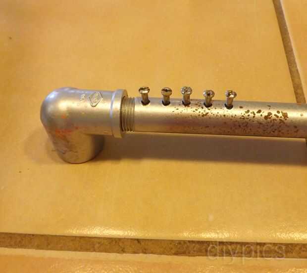 Si te fijas bien en el mecanismo de engranaje vertical, verás un pequeño rodamiento de bolas rojo en la parte posterior de uno de los equipos "los dientes". Este cojinete y otro idéntico uno unido al pistón de la bomba de agua son lo que permiten que la pieza de conexión entre el aerogenerador y la bomba de agua se mueva libremente, transferir fuerza horizontal del viento a la fuerza hacia arriba y abajo de la bomba de agua. La conexión "varilla" sí mismo está hecha de PVC. He pintado que se vea oxidado (consulte el paso 4 en el proyecto de lámpara al aire libre para más detalles) y más adelante inserta algunas tuercas de radios de bicicleta en el plástico por calentamiento en una estufa de gas.