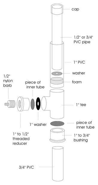 este es un fácil, barato, no se mueve piezas, bomba de agua DIY.Ya que no tiene partes móviles, apenas puede romper hacia abajo.Se basa en el efecto de elevación de aire.Es un sistema muy viejo, acabo de encontrar una manera barata y fácil de constru