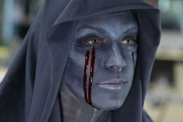 Pasado Halloween me inspiré a spooky, como realmente espeluznante. Mi elección del traje fue un ángel de cementerio, pero eso no fue suficiente. Necesitaba algunos músculos electrónicas la flexión y siempre ha intrigado por las vírgenes llora. Por lo tanto, decidí probar el efecto de llorar sangre.