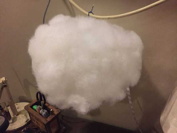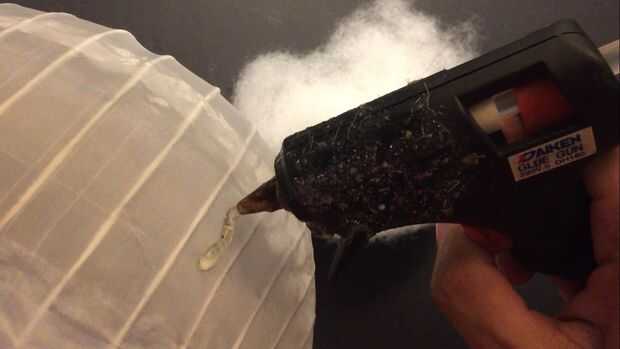 Pegar el algodón de la almohada a la linterna de papel. Asegúrese de que la linterna de papel está cubierta totalmente con algodón.
