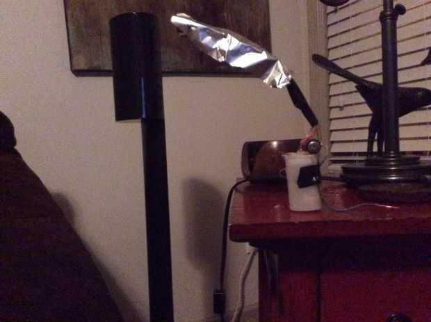 Aunque este paso es técnico opcional, el reflector puede ayudar a enfocar la luz. Cuando estás leyendo un libro, lo más probable es que usted desea que la luz dirigida hacia usted, no el techo. Para asegurarse de que la luz llegue a ti, primera portada que ambos condujeron conduce (la "L" en forma de hilos) en cinta aislante. Esto es nesesario para aislar los alambres de la parábola. Después, corte una tira de papel de aluminio. Aplique pegamento caliente en la cinta eléctrica y coloque el papel, el lado brillante hacia abajo, sobre el pegamento caliente. Doblar el papel alrededor de los bordes a más directa la luz. Esto debe asegurarse de que están recibiendo tanta luz como sea posible.