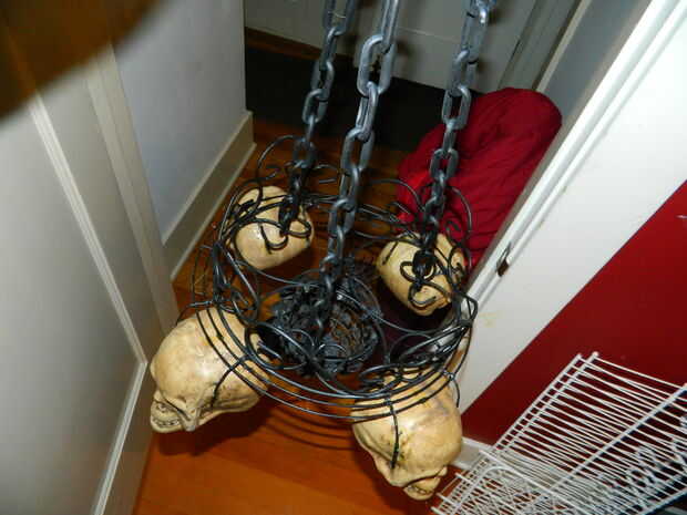 Cortar el enlace en un extremo de cada cadena y clip para el cuerpo. Por suerte los plantadores me dado 3 puntos de anclaje equidistantes. Si tu no tan afortunados, espacio les tan uniformemente como sea posible o la lámpara no cuelgue nivel.