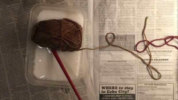 Poner el hilo en la mezcla. Asegurándose que el hilo se empapa con el pegamento mixturez