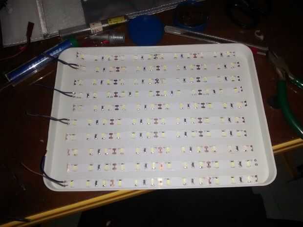 Tenía tiras de LED SMD 5630 de una compilación anterior mío. Era el techo de mi banco de trabajo. No muy útil ya que sólo se estaba encendiendo mi banco de trabajo y no mucho más. Es muy luminoso. Comprado fuera de ebay de China.