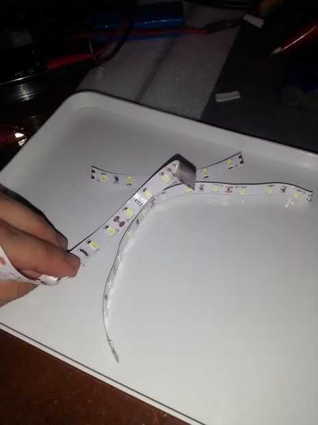 Las tiras de LED se pueden cortar a tamaño y colocadas donde quieras porque tenía cinta de doble cara en la parte posterior. El adhesivo fue siendo bueno no moleste aplicar la cinta nueva.