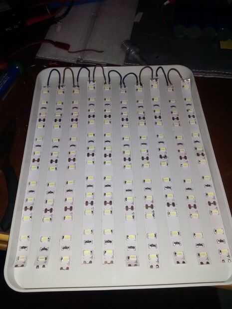 En las tiras hay solamente 2 conexiones 12V y 0V/GND. Necesita paralelo ellos juntos o serie de ellos. Yo aconsejaría a los paralelos porque sería más fácil si una tira muere hacia fuera en usted que los otros no será afectado mucho.