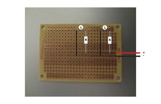 se trata de unos simple de un circuito que puede hacer. se sueldan dos LED de en paralelo cada uno con resistencia propia allí.