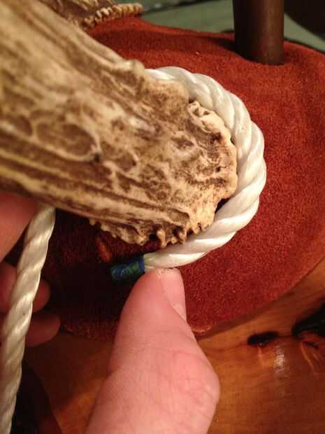 Mida la longitud de la cuerda que tendrá que rodean la base de cada asta. Asegúrese de cinta de la cuerda antes de cortar y quemar los extremos con un mechero para evitar que se deshilachen en usted. Sujete la cuerda alrededor de las bases de asta de ciervo con una pistola de pegamento caliente. Esto cubrirá hasta cualquier huecos entre la piel y la base de los cuernos y al mismo tiempo le dan un aspecto limpio y acabado.