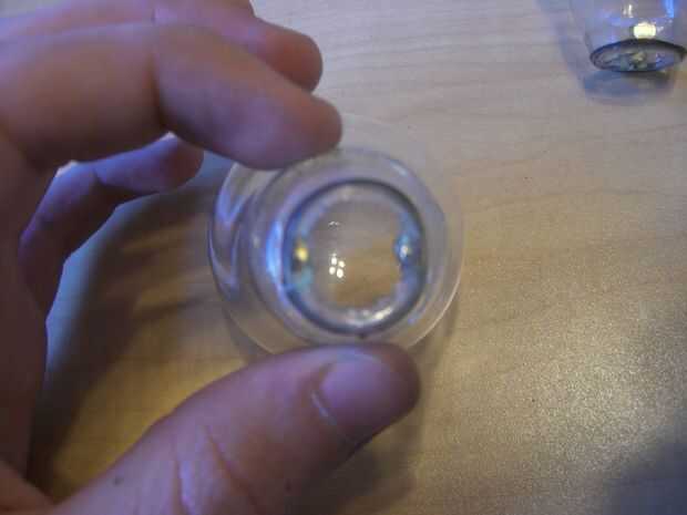 En la parte de cristal de la bombilla donde se fija la base a hay dos hendiduras pequeñas que proporcionan suficiente espacio para un imán de neodimio pequeños ser fijados en el interior de la base.
