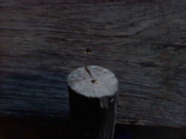 Marque el centro de la base y luego perfore un agujero piloto para el 3" tornillo de la misma para el palo.