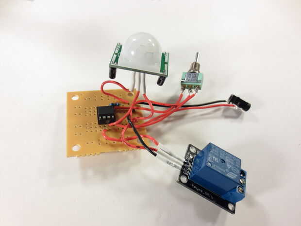 Debe haber tres cables que salen del sensor relay y movimiento. En + 5v, el otro es tierra, y el tercero es el control. Pueden etiquetarse (CT, C o Vout).