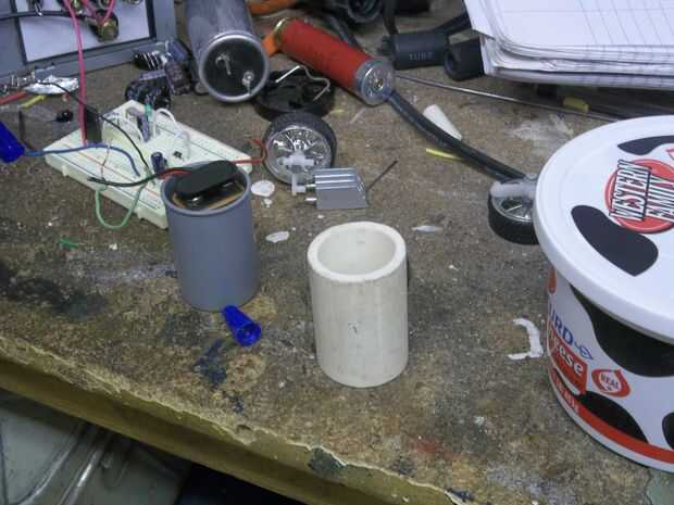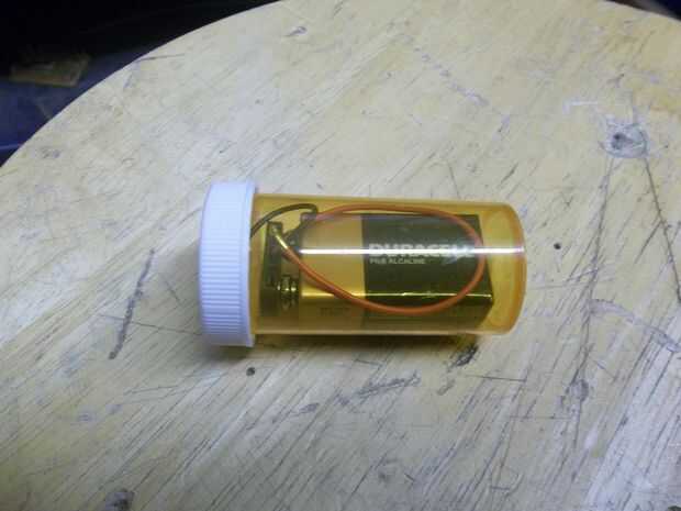 una lata de película era estrecha pero sólo un poco demasiado pequeño, y finalmente me decidí por una botella vacía de la píldora.