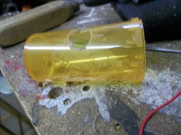 utiliza una broca de 1/2 pulgada para hacer un agujero y luego limpiar con una hoja de afeitar.