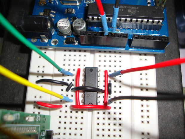 Paso 4-: conectarse arduino pin 2 a pin 2 del ic y luego conectar el pin 7 del ic a arduino pin 4.