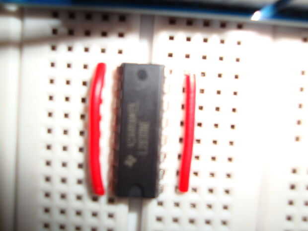 Paso 3-: conectan los pines 1,8,9,16 y luego conectar el pin 16 para el carril positivo de la protoboard.
