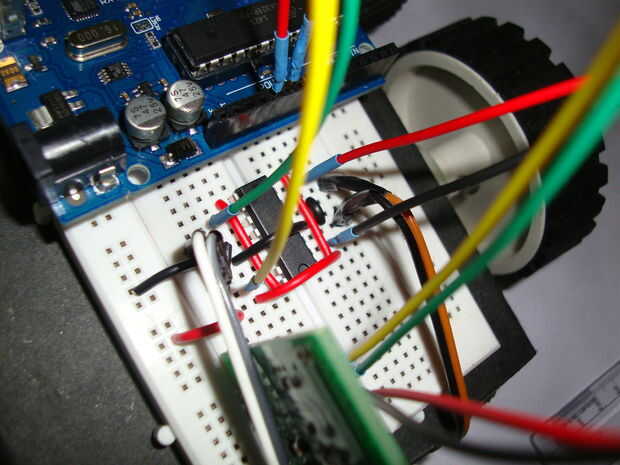Paso 7-: conectar derecho par de motores al pin 11 y 14 en cualquier manera.