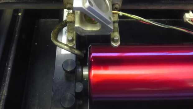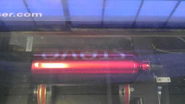 Nota sobre el poder: botellas de diferentes colores anodizado requieren cantidades diferentes de energía mínima. Rojo requiere menos energía para conseguir un acabado limpio (~ 40%), pero el azul y verde requiere una potencia mucho más elevada (~ 60-80%). No parece haber ningún efecto adverso en el uso de demasiado poder (que no sea de reflexión, que no noté mucho) por lo que sería pecar de más potencia.