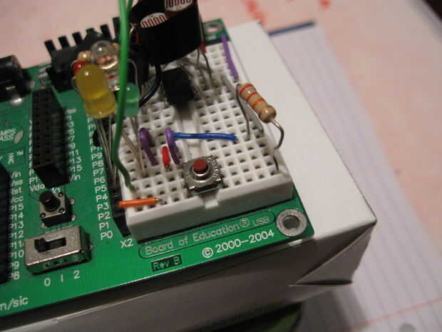 Paso 10. Conecte su interruptor táctil para que un cable se conecta directamente al pin 0 (u otros) en el microcontrolador, el otro cable en el otro lado se conecta a la energía, y el conductor uno conductor en Hel otro lado conecta a tierra a través de un resistor de k 22.