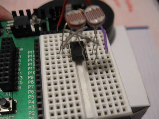 Paso 4. Conecte dos fotorresistores en serie del pin 2 al pin 6.
