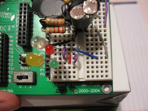 Paso 8. Conecte cada uno de su cuatro luces LED para que sus ánodos ir a pernos de 2 a 5 (u otros pins) en el microcontrolador y dejar extremos abiertos por la Junta. (ver imagen de abajo para obtener más información sobre cómo se ve)