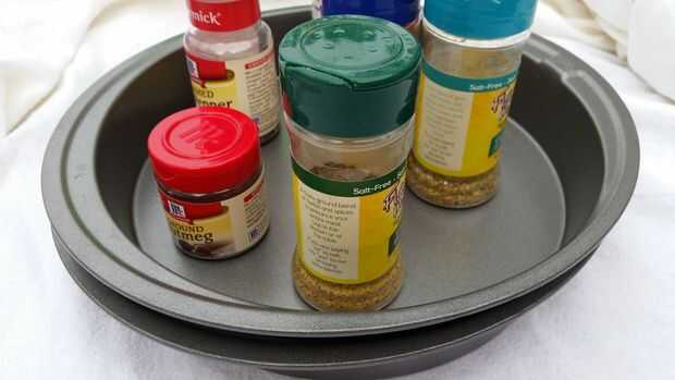 tengo un rincón de mi cocina donde guardo asorted artículos que quiero mantener aseado y fácilmente evaluables. Un Lazy Susan parecía la solución más simple, pero quería ser fuerte para no tener que anclar a la barra. Tenía un viejo giradiscos de CD