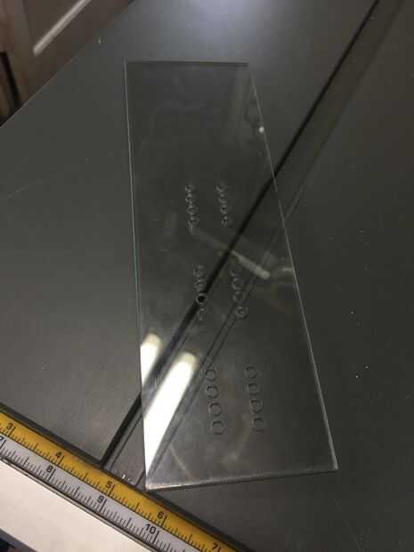 Esta pieza se utilizará para la parte superior de la caja, será proteger los cables de cualquier cosa y también le dan un aspecto limpio. Para que tome este pedazo fino de plástico y cortar longitud sabio 24,8 cm y 8cm de ancho. Después de usted tiene opción dos cualquiera de los dos agujeros para que el LED puede caber exactamente en o usted puede cortar un rectángulo en el centro de la pieza para simplificar su proyecto. Lo hizo con los agujeros y es un proceso muy largo. En el vídeo, se explican las instrucciones sobre cómo hacer estos agujeros (https://www.youtube.com/watch?v=Sneq32wntfs)