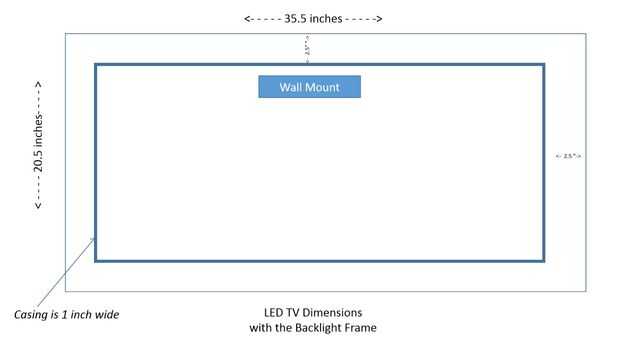 - Tomar la longitud y la anchura de su TV. En mi caso es 35,5 pulgadas y 20,5".