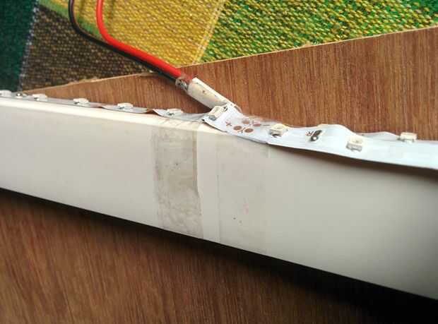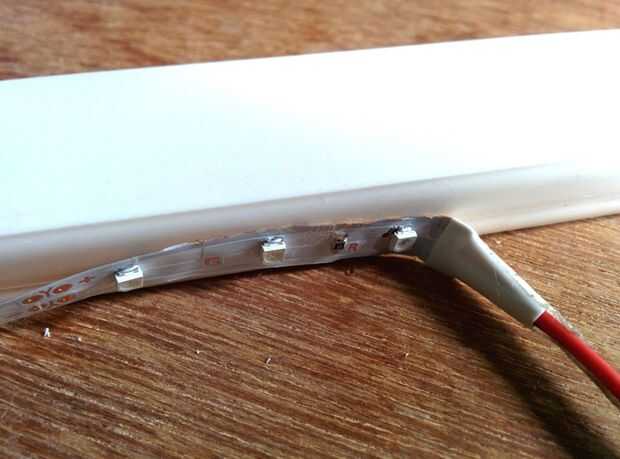 Quitar un poco de adhesivo papel y pegamento. Repita hasta que ya no tienes LED tira al palo.