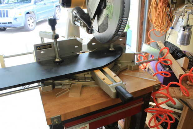 Que necesitaba cortar el primer borde recto utilizando una plantilla de"borde recto" abrazaderas la extraña forma en el bar y el bar paseos a lo largo de la valla para tu primer corte. A continuación, quitar la plantilla y la Junta para otro lado borde recto del tirón.