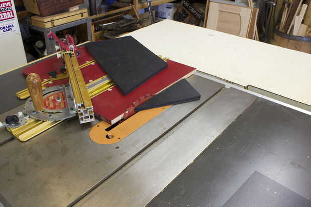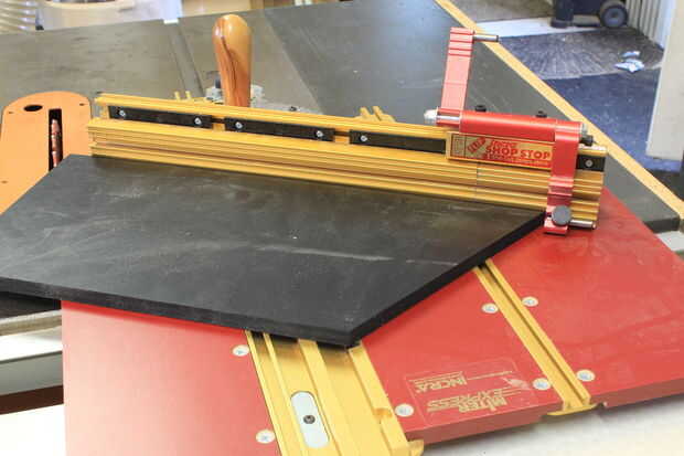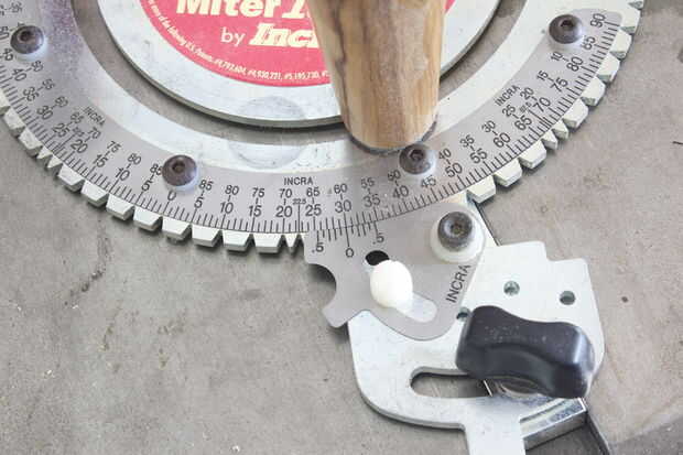 A continuación, configurar el trineo del crosscut a 30 grados y había hecho el primer corte en el extremo de cada tapa.
