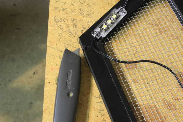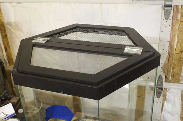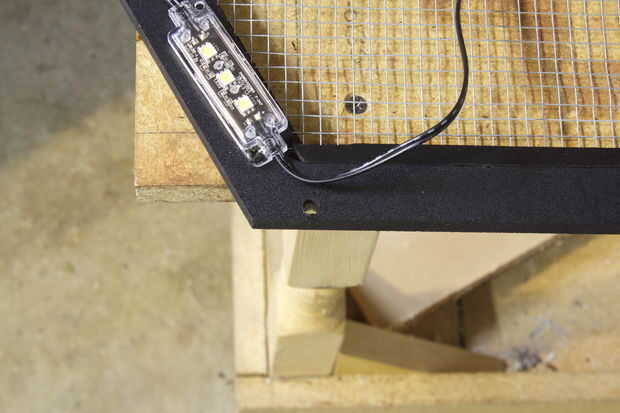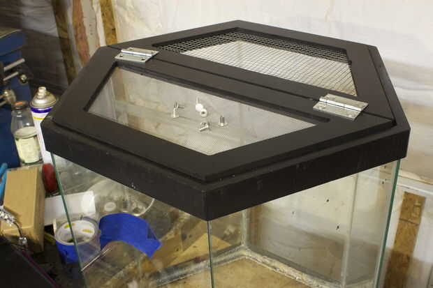 Tuve que quitar la tapa y darle la vuelta boca abajo para las luces. Estas lámparas consisten en 7 accesorios de plasic pequeña Unidos por sus alambres de conexión. Coloqué en el lugar adecuado antes de atornillar los accesorios abajo. Tuve También Perfore un pequeño agujero en la parte posterior de la tapa para permitir que el cable de salida del interior del tanque.